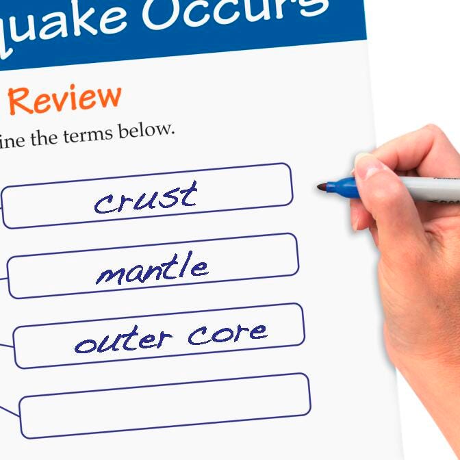 The Earthquakes Curriculum Learning Module provides a complete set of visual, digital and hands-on resources to provide students with the skills to master key standards-based concepts. Students will gain thorough comprehension from an engaging blend of technology-based instruction, interactive print resources, and game-based learning. The module includes: 1 Flip Chart Set with 10 laminated, “write-on/wipe-off” charts; 1 Student Learning Guide featuring illustrated explanations, assessment questions & a lab investigation; 1 Vocabulary Review Card Set; 1 Curriculum Mastery Game for four players; and a 1-Year Premium Subscription to NewPath's Online Learning Program providing access to narrated multimedia lessons, interactive activities, virtual lab investigations, games, quizzes and more. Covers How Earthquakes Form; Seismic Waves; Measuring Earthquakes; Earthquake Destruction & Safety.