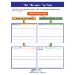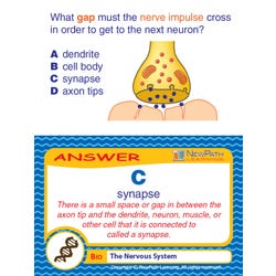 Complete, easy-to-use and engaging, the Nervous System Learning Center is ideal for the instruction and review of this key, standards-based concept. Designed for either teacher-directed instruction or independent use by groups of 2 to 4 students, the Learning Center provides complete, leveled coverage of this curriculum-aligned topic, making it perfect for differentiated instruction. To use, the students first work individually or in pairs using the 4 laminated Visual Learning Guides provided on the topic. The guide provides a graphic, easy-to-follow overview of the concept; “Write-On/Wipe-Off” activities and graphic organizers; and a set of guiding, assessment review questions. They then form in a group to play the Curriculum Mastery Game included for cooperative or competitive review and reinforcement of the concepts. Packaged in a durable pouch, the Learning Center is a ready-to-use resource for the classroom, after school and summer school programs or at home for test preparation, practice and review! Grades 6 to 10.Features