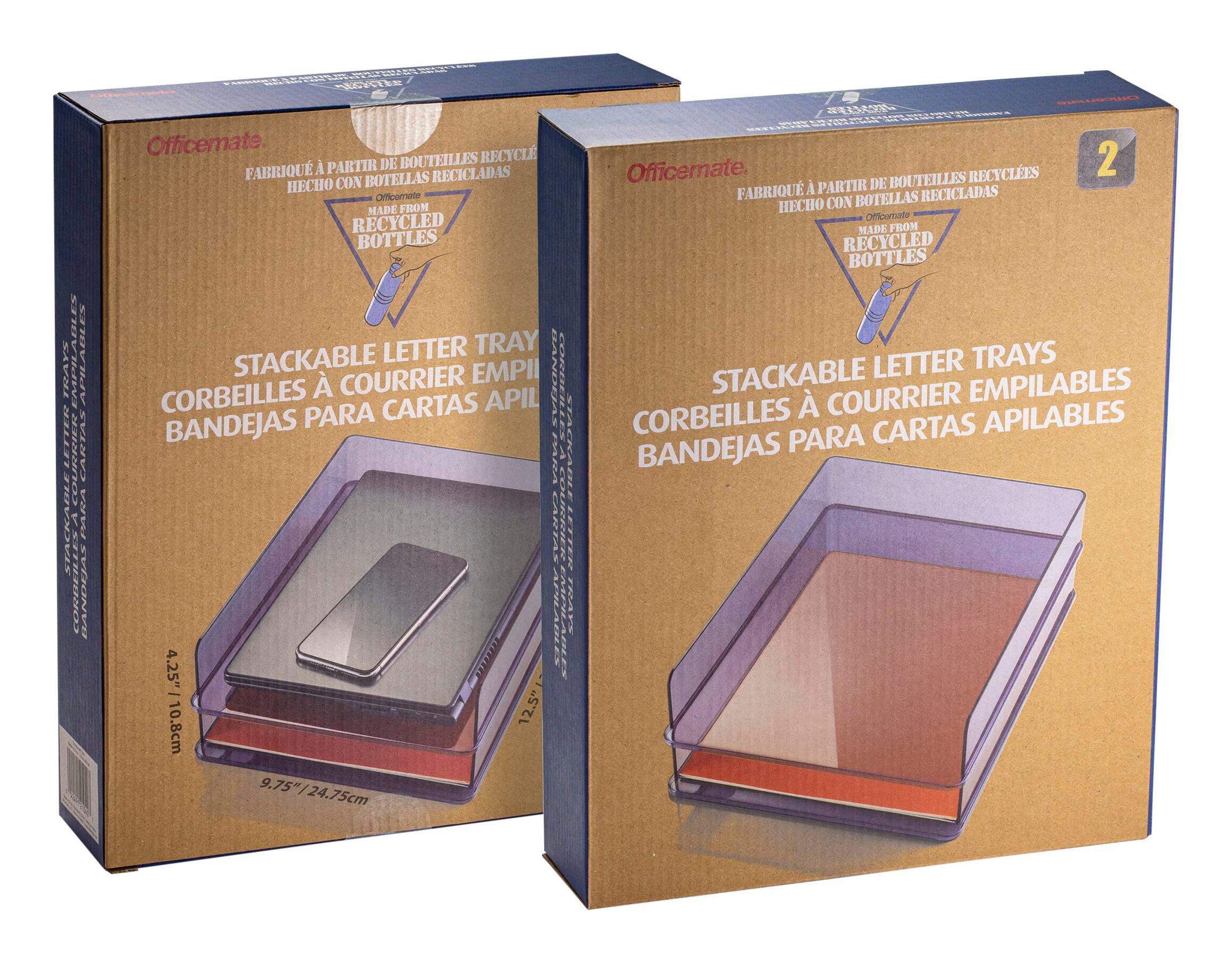 Neatly holdly papers, folders, and notebooks in these front load letter trays from Officemate. Both trays nest securely on top of one another for solid stacking and are made of durable and sturdy translucent 100% recycled plastic bottles (and packaged in 80% recycled materials). Each tray measures 12-1/2 x 9-1/2 inches.Features