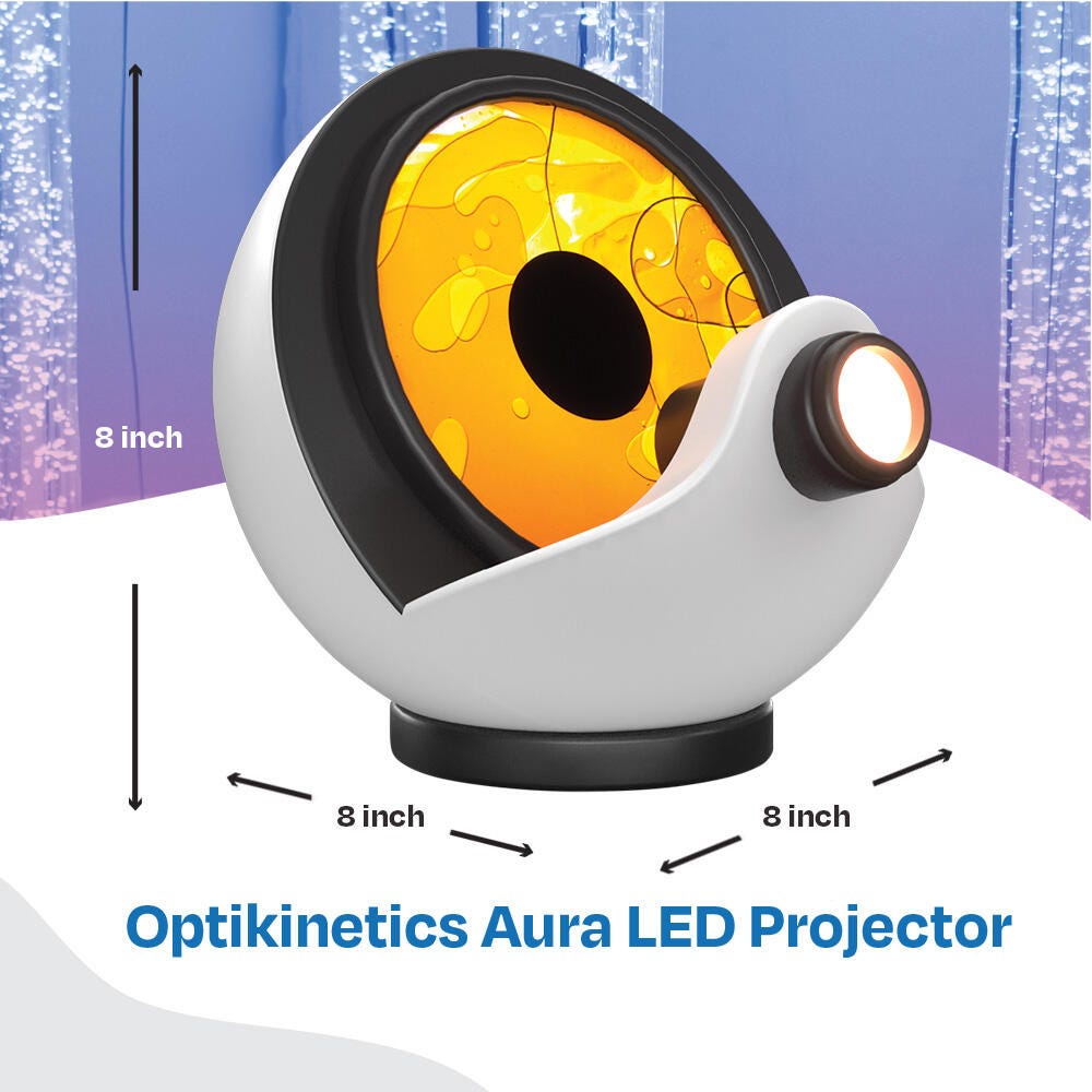 The Aura LED Projector is the perfect projector for your home sensory environment or for a simple classroom turned sensory room experience. This affordable LED projector brings to your space the same effects found in multi-sensory rooms around the world! It is designed with a built-in wheel rotator for smooth, soothing movements as the projector moves to create a more engaging experience for all. This model is not compatible with the Panoramic Rotator, Distortion Wheel, Clip-on Prism or Multi-Facet Mirror. Designed with a bright 600 lumens with an 85mm lens for crystal clear imaging. Perfect for tabletop use.