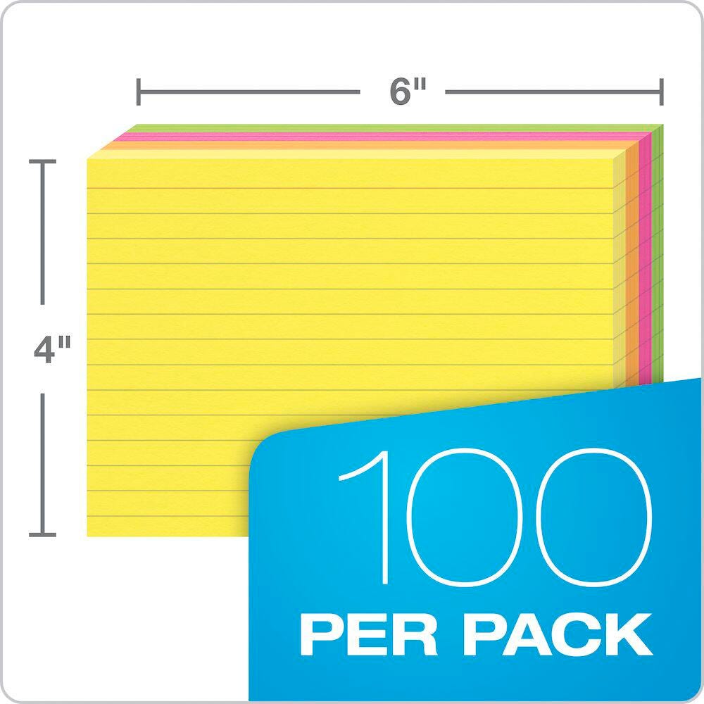 Oxford Index Cards, 4 x 6 Inches, Ruled, Assorted Neon, Pack of 100