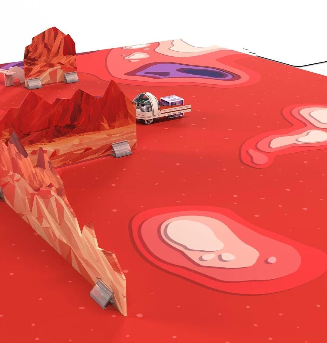 Embark on an interplanetary adventure with the Mission to Mars Challenge Mat! Over 232 million miles away from Earth, Evo lands on the Red Planet, surrounded by rocky canyons, towering volcanoes, and endless stretches of barren terrain. Students take on the role of mission commanders, coding Evo to navigate this alien landscape and locate vital supply crates and fuel barrels critical to establishing a successful Mars base. Each step requires strategic planning and problem-solving to ensure the mission's success. This STEM activity brings coding to life by combining robotics with an exciting space exploration theme. As Evo tackles challenges on Mars, students develop essential skills such as critical thinking, spatial awareness, and programming logic. This kit includes everything needed for this out-of-this-world adventure: A 24 x 33-inch coding mat that fits most classroom desks, challenge cards with step-by-step mission objectives, and accessories for Evo. The durable and reusable design ensures the mat can support multiple missions, making it a perfect addition to any STEM or space-themed curriculum.Features