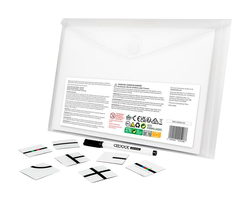 Ozobot Color Code Magnets offer a fun and interactive way to teach coding principles to students as young as Pre-K. The Base Kit includes the magnetic board, wet erase marker, and 36 puzzle pieces that pair with the Evo robot for a hands-on learning experience that introduces the foundational coding concepts. A mix of Ozobot Color Codes and line-following pieces, the Base Kit enables students to experiment with sequencing, logic, and problem-solving skills. Appropriately sized and easy to use and manipulate, Color Code Magnets are perfect for young learners who are just starting to explore the world of coding. Code Magnets are durable and long-lasting, ensuring they can withstand the wear and tear of regular use in the classroom.Features