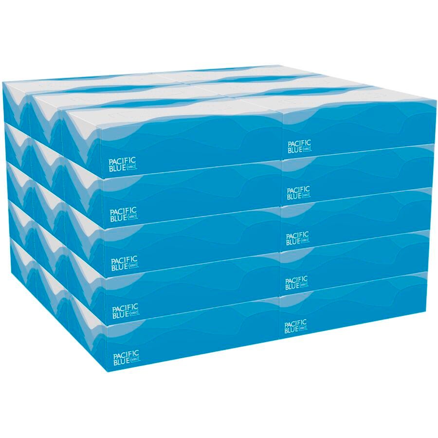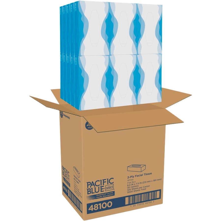 Pacific Blue Select Absorbent Flat Box Facial Tissue, White, 100 Tissues Per Box, Case of 30 Boxes
