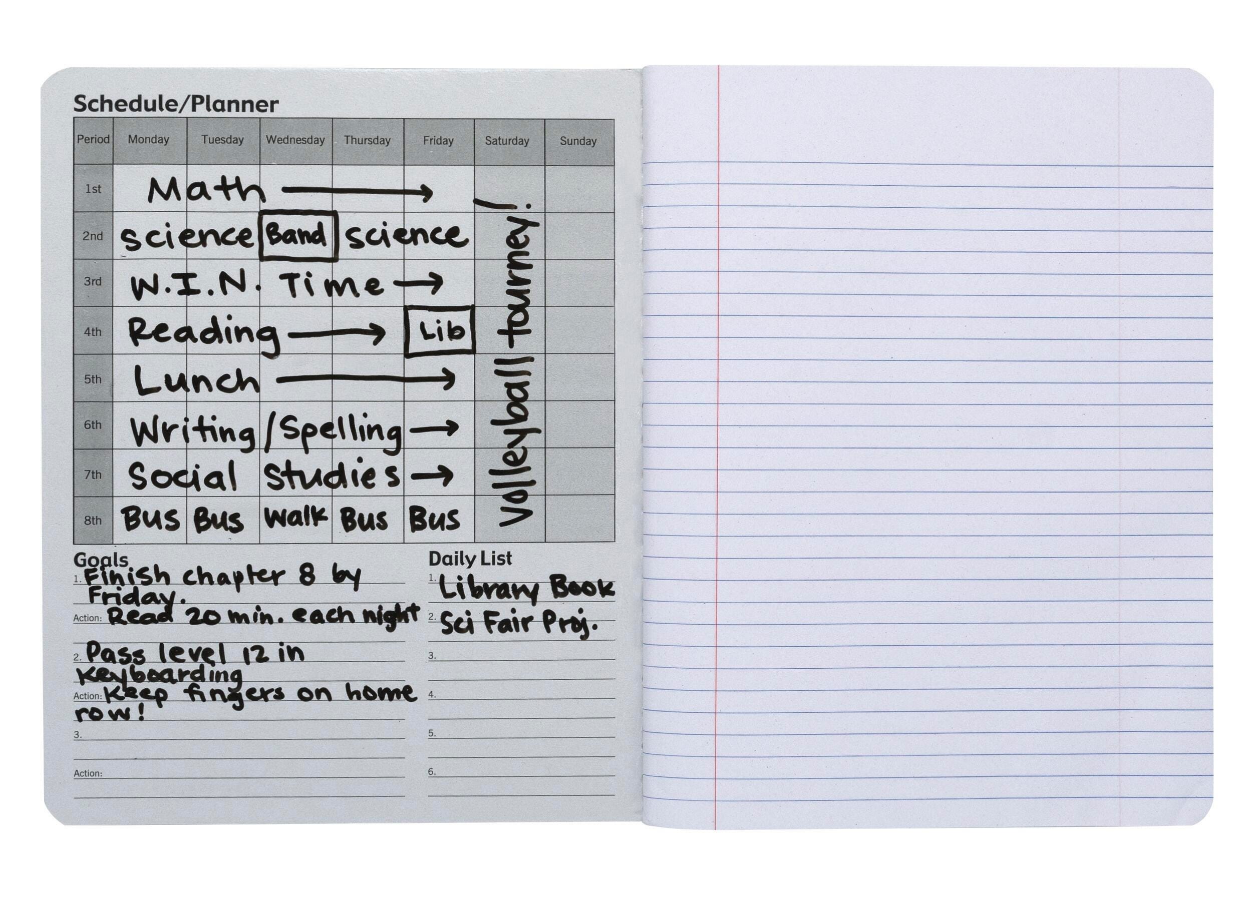 Organize your day, your thoughts, or just practice your lesson using the dry erase surfaces inside these new composition books. Two dry erase surfaces, located inside the front and back covers, provide exciting new ways for your student to learn, engage and have fun. These hard cover books come in black marble, with 100 sheets each. College (9/32 Inch) ruled with Red Margins. Recyclable.