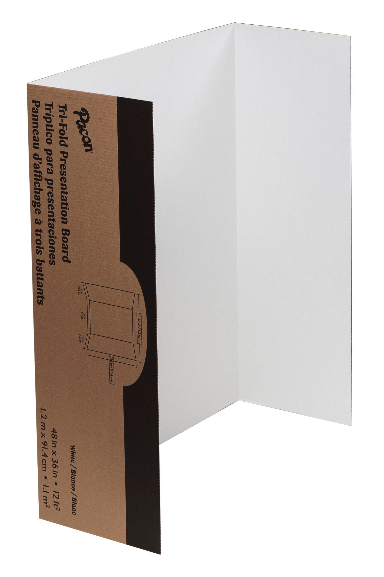 Presentation Boards are tri-fold, double wall corrugated display boards used for projects, booths, science fairs and all types of displays. Each board is colored on the front side and Natural Kraft on the back. Board size is 48 x 36 in and 6 mm thick and folds to 24 x 36 in. Recyclable.