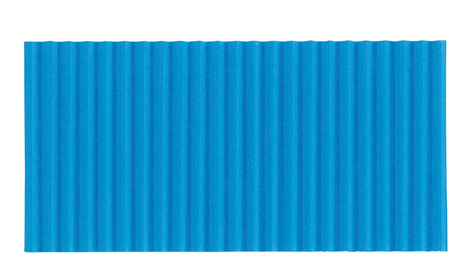 Corobuff Bright Blue Corrugated Paper Roll measures 48 inches x 25 feet and is resistant to fade. Paper roll adds texture and dimension to creative art experiences, bulletin boards and craft projects. Color on one side. Corrugation on one side provides a firm surface for painting, gluing and other craft activities on the smooth side. Our exclusive guideline pattern printed on the back makes it easy to cut, measure or score. Recyclable.Features