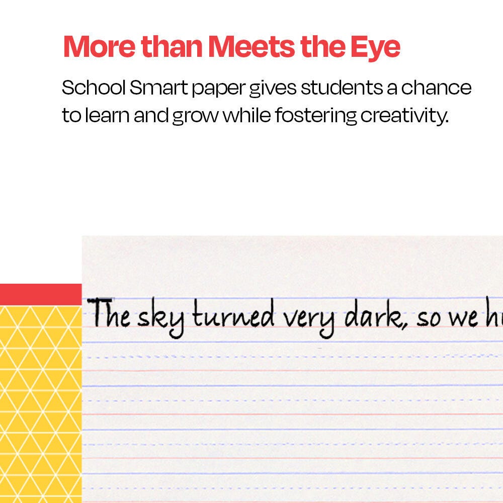 School Smart Red and Blue Ruled Newsprint has a red baseline, light blue broken mid-line, and heavy blue headline. Each sheet includes a 1/2 inch ruling, 1/4 inch broken midline, and 1/4 inch skip space. Conforms to Zaner-Bloser style. Each sheet measures 10-1/2 x 8 inches. Ideal for Grades 2 to 3.