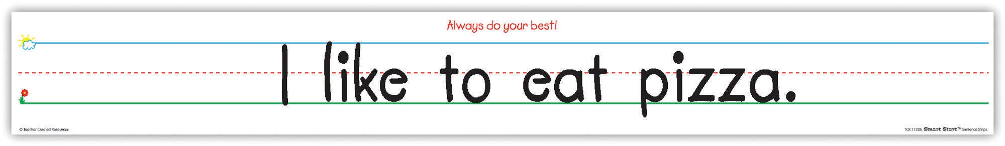 The Smart Start™ "Sky to Ground" concept helps students master foundational writing skills. These magnetic, ruled sentence strips feature colored lines with sky and ground graphics to reinforce the "Start at the Sky and Pull Down to the Ground" approach to proper letter formation. The write-on/wipe-off surface allows students to practice again and again during classroom lessons, small group practice, or individual study. These handy strips are easily repositionable and firmly stick to any magnetically receptive surface. This pack contains 6 sentence strips, each measuring 24 x 3 inches.Features