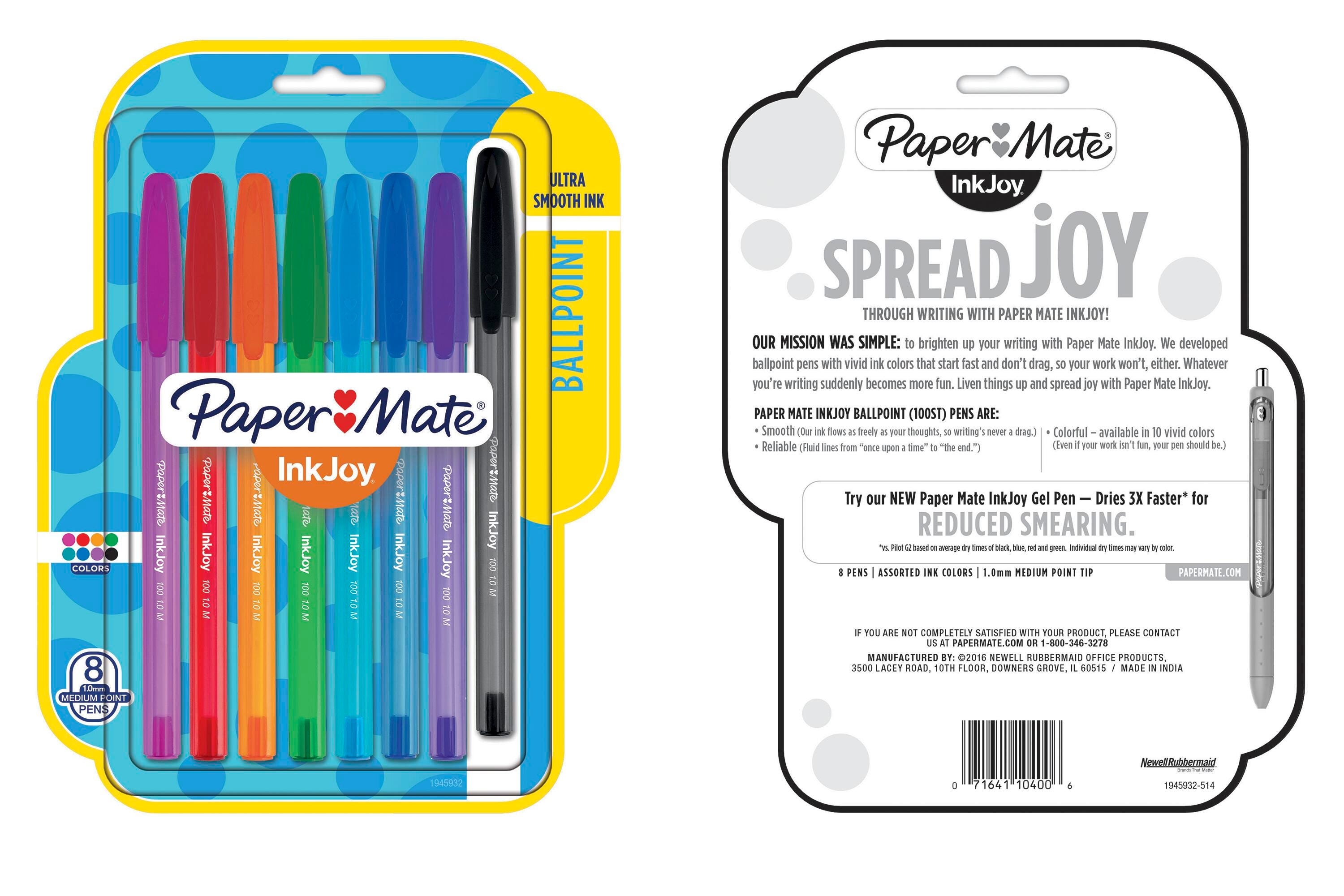 InkJoy stick ballpoint pens have a smooth, fast-starting writing system that spreads ink easily without drag.
