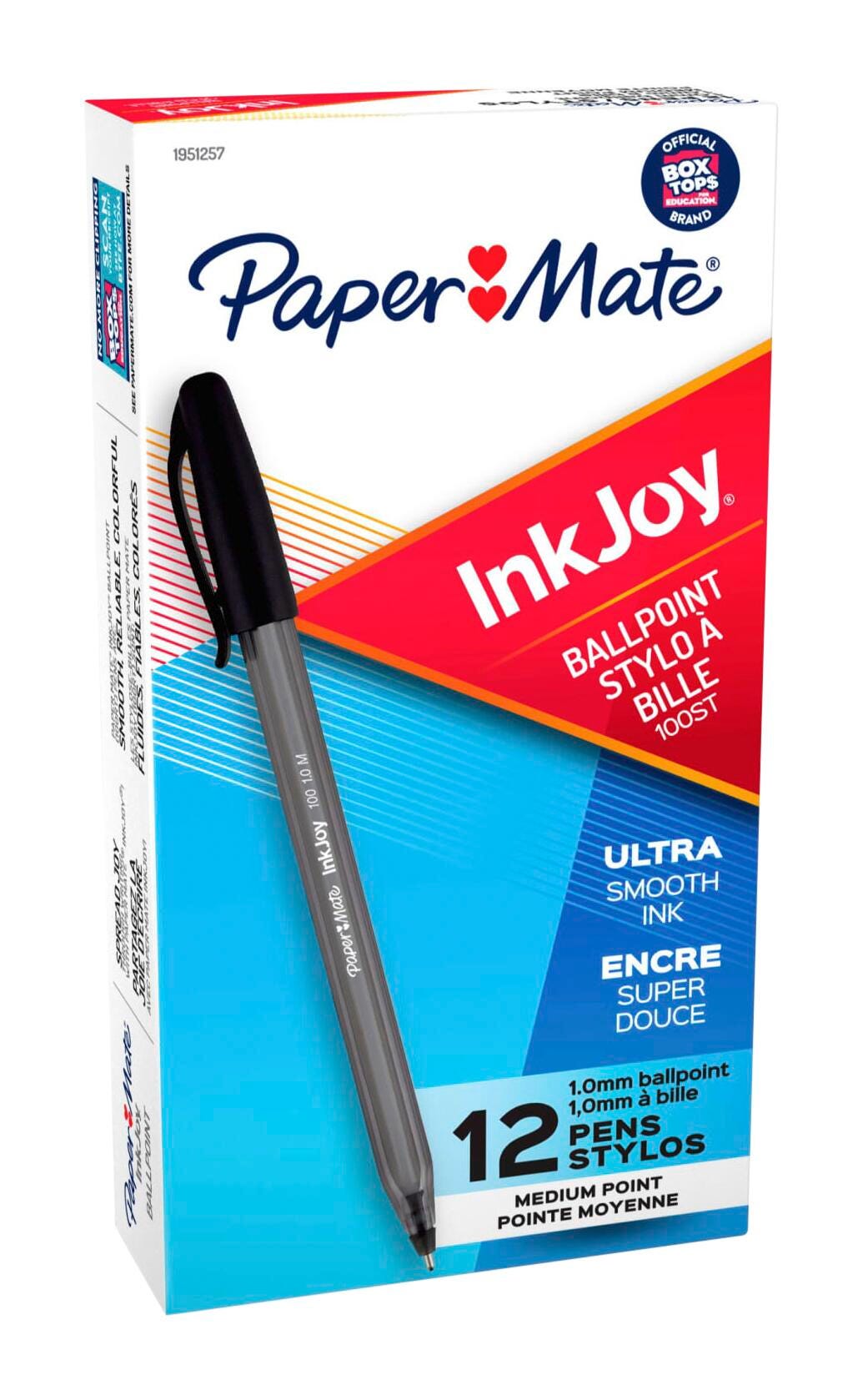 Paper Mate Inkjoy Ballpoint Pens, Medium Point, 1.0 mm, Black, Pack of 12