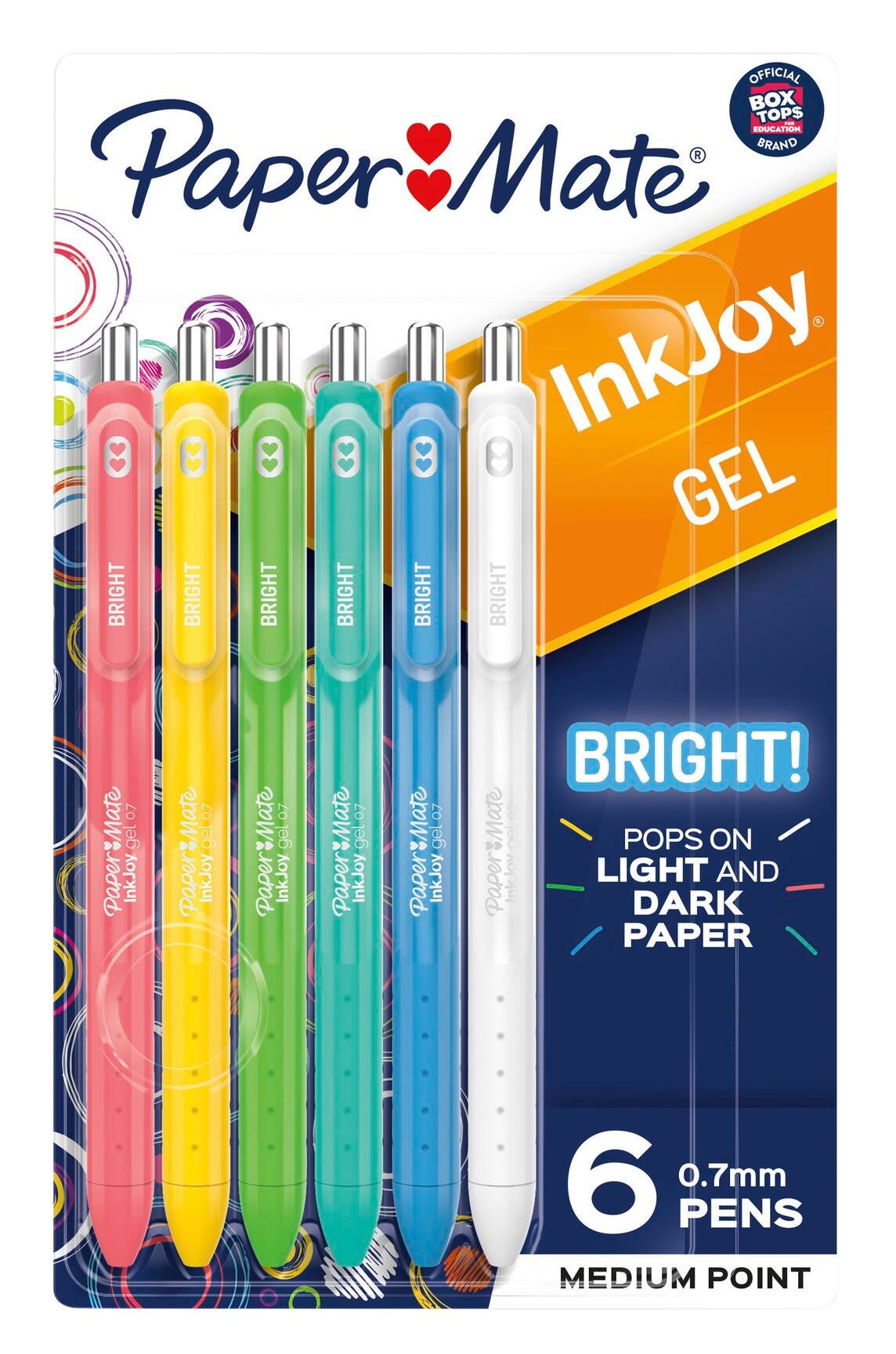 Paper Mate InkJoy Gel Bright Retractable Pens, Medium Point, 0.7 mm, Assorted Colors, Set of 6
