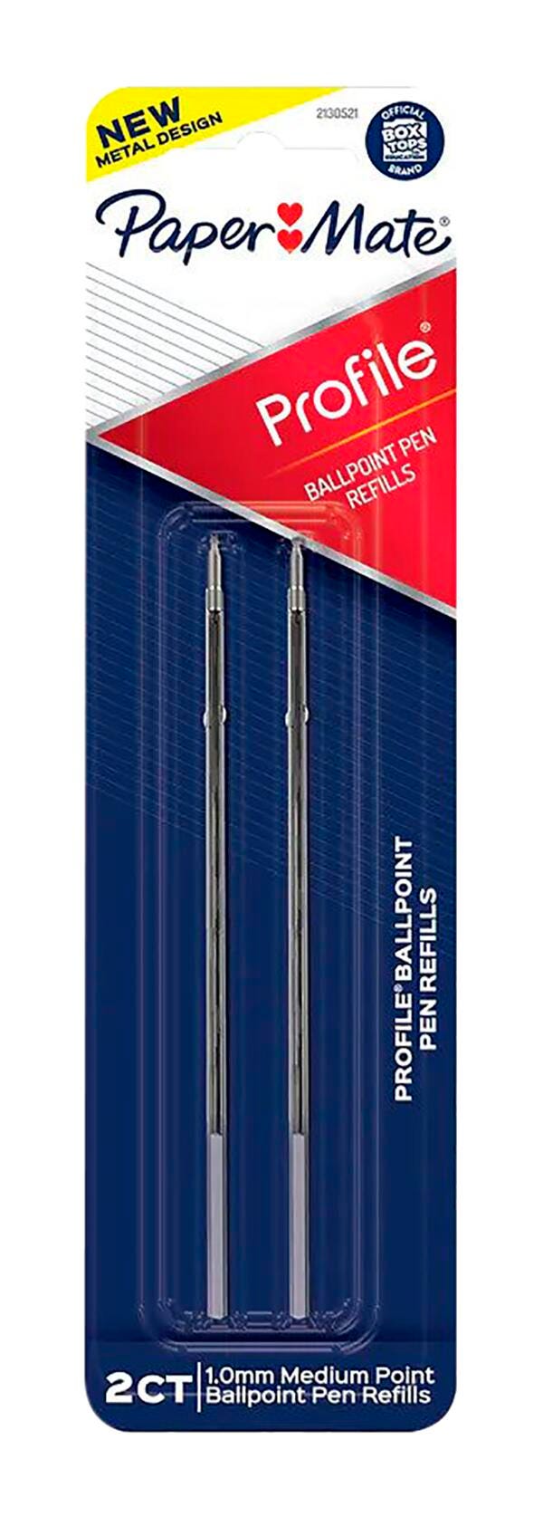 Keep the writing going with ink refills for your Paper Mate Profile ballpoint pen. These pen refills deliver the same smooth ink for clean, crisp writing. Plus, refilling your pens is an economical choice that produces less waste than buying new pens when you run out of ink. This set contains 2 refills with black ink and medium ballpoint tips.