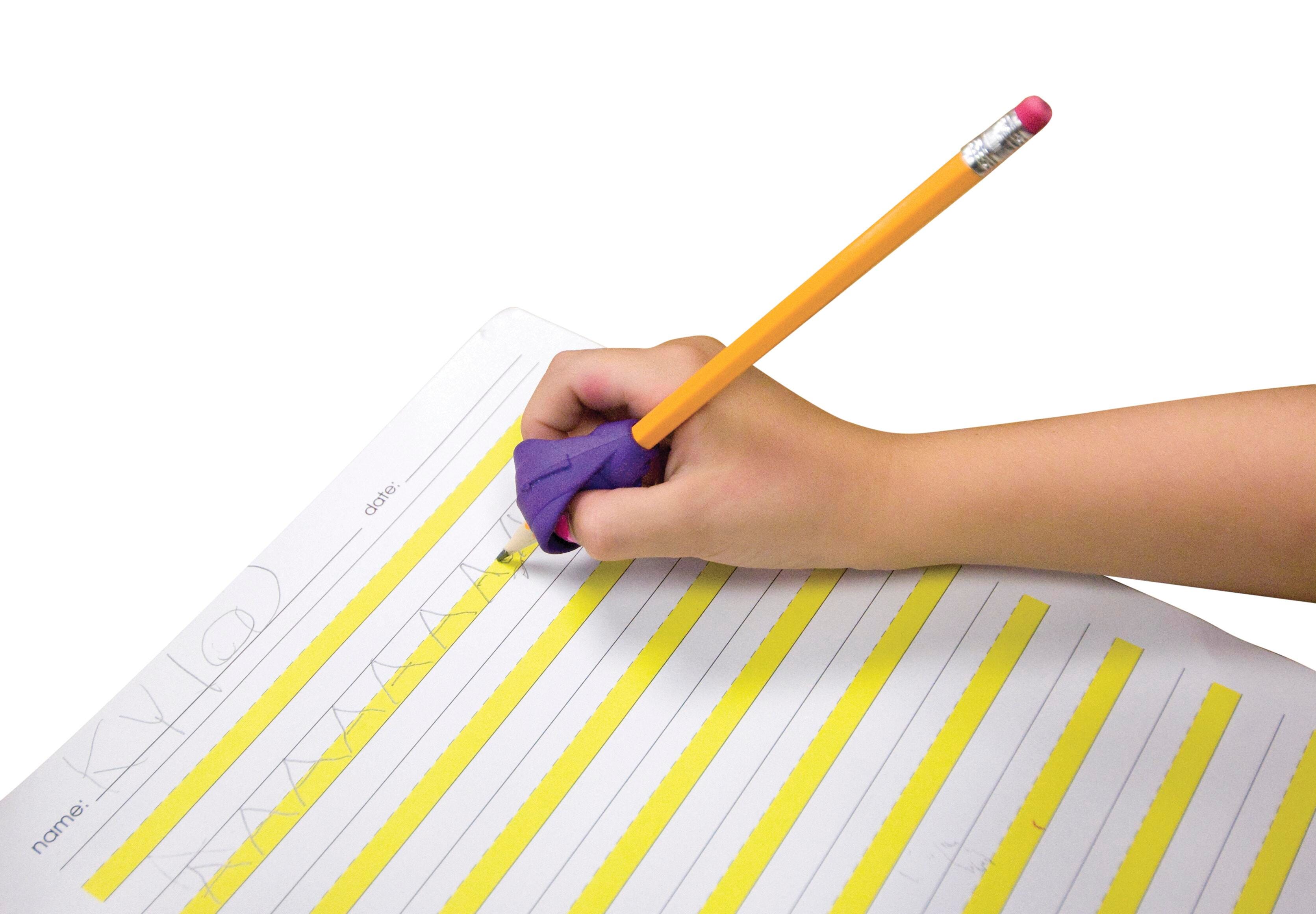 Pathways For Learning Grotto Grip encourages open web space and is large and comfy. Cool space-age design for righties or lefties. Best of all a partition and covered finger spots make it virtually impossible to use incorrectly. Set of 3.