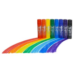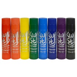Kwik Stix Tempera Paint sticks take the mess out of painting while keeping all the fun! Simply uncap, twist, and paint! Kwik Stix have a fast drying formula that allows them to dry in 90 seconds while still leaving a paint-like finish. No cups, smocks, water, or brushes required- less time for clean up, more time for fun. Kwik Stix come in assorted vibrant colors with coverage that won't crack. Great on poster paper, cardboard, wood, canvas, and much more. Kwik Stix are tested to the highest testing standard and are nut, egg, and gluten-free. This large pack contains 96 paint sticks, with 12 sticks in each of the following colors: red, blue, indigo, green, yellow, black, orange, and violet.Features