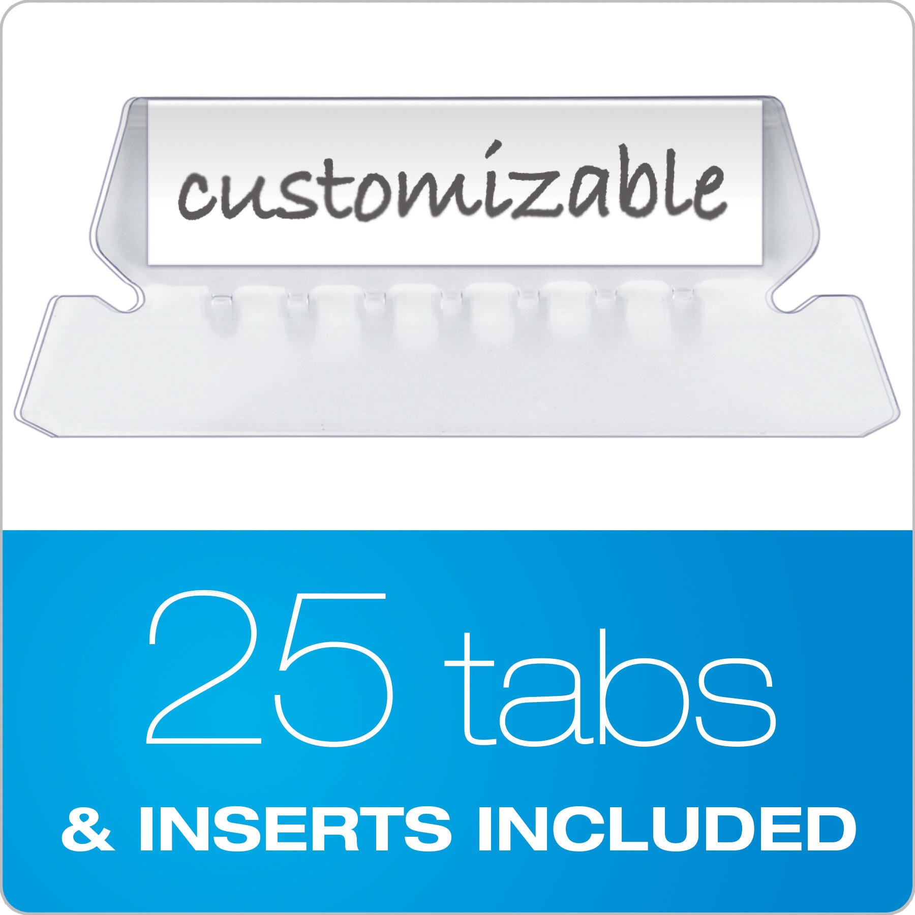 - File folder includes clear tabs and white inserts