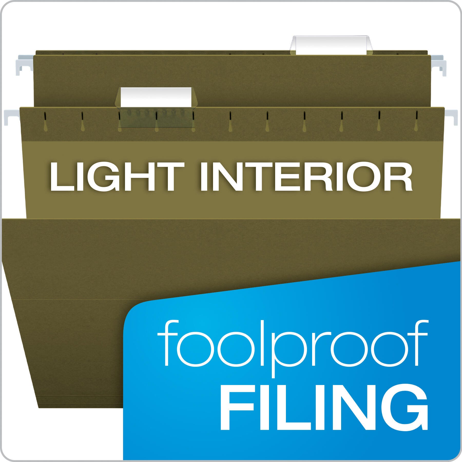 Pendaflex Letter Size Hanging File Folder with 1/5 cut tabs features coated tips to slide easily in file drawers while keeping your papers neatly and securely in the file. File folder includes clear tabs and white inserts. Folder featuring bottom scored for expansion is sold as 25 per Pack.Features