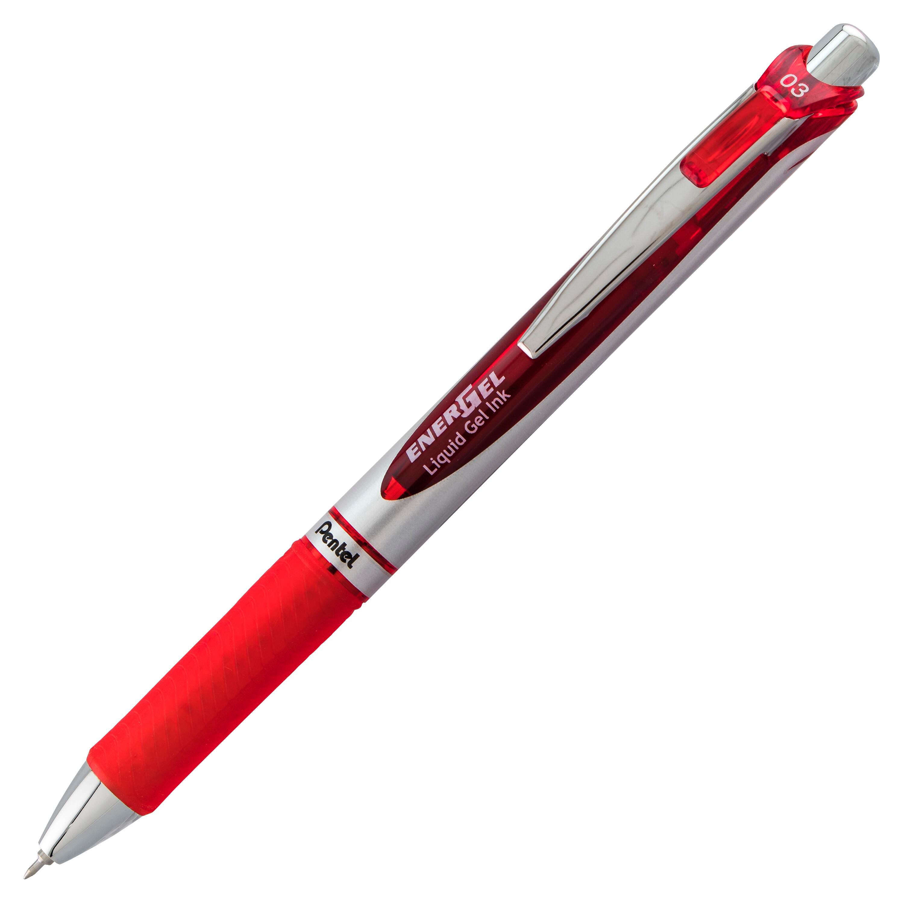 Pentel EnerGel RTX Retractable Liquid Gel Pen, 0.3 mm Needle Tip, Red Ink, Pack of 2
