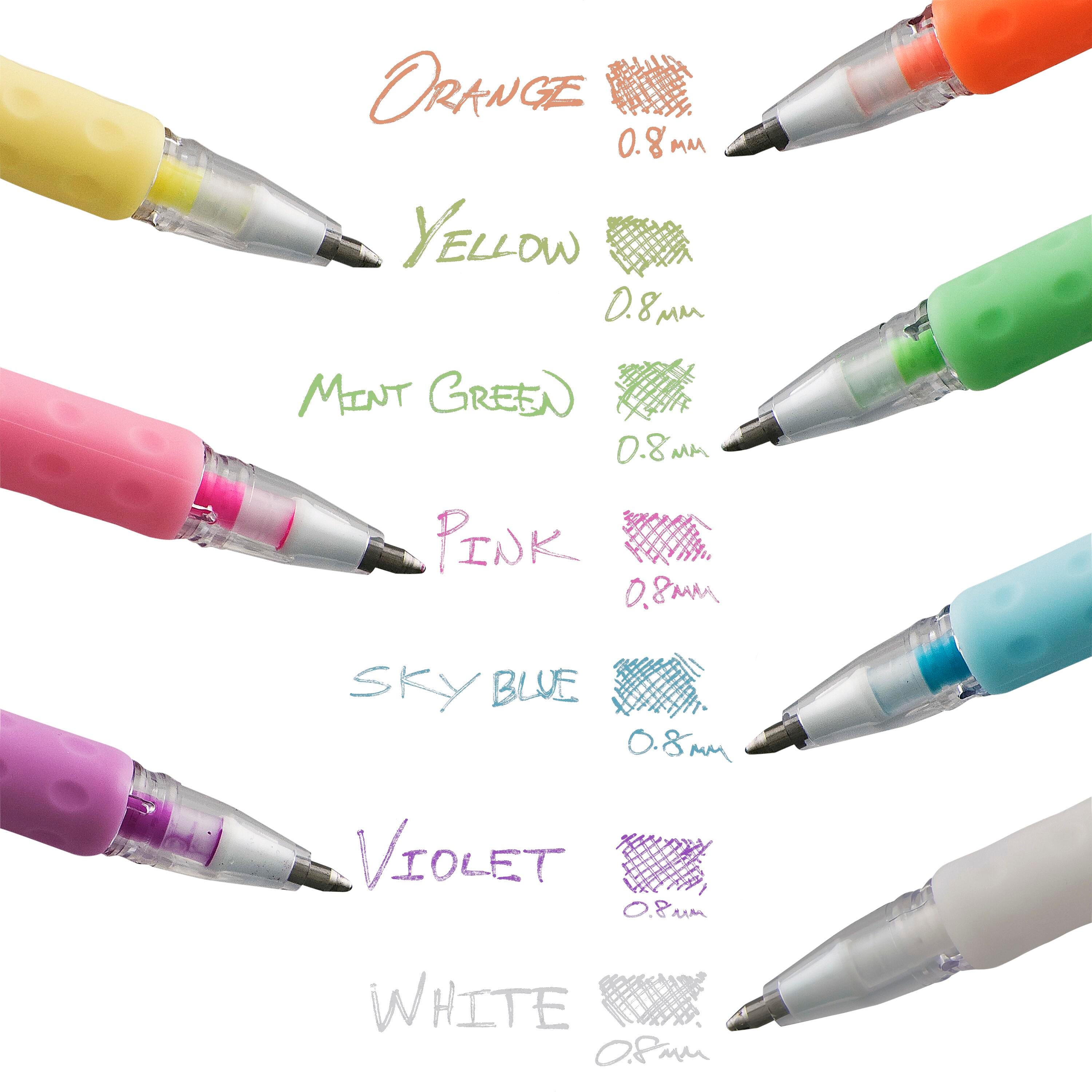 Milky Pop Pastel Gel Pens have a smooth, vivid pastel colored ink that contrasts well with dark colored paper to make your writing and artwork stand out. They are perfect for invitations, greeting cards, drawing and more. Pen has an extra-long balanced barrel for effortless writing and control and a latex-free grip for comfortable writing and drawing.Features