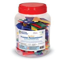Learning Resources Rainbow Premier Pentominoes come in sets of red, blue, green, yellow, orange, and purple, and are packed in a clear plastic tub for easy storage. Six per set. Ages 6 and Up. 72 Pieces.Features