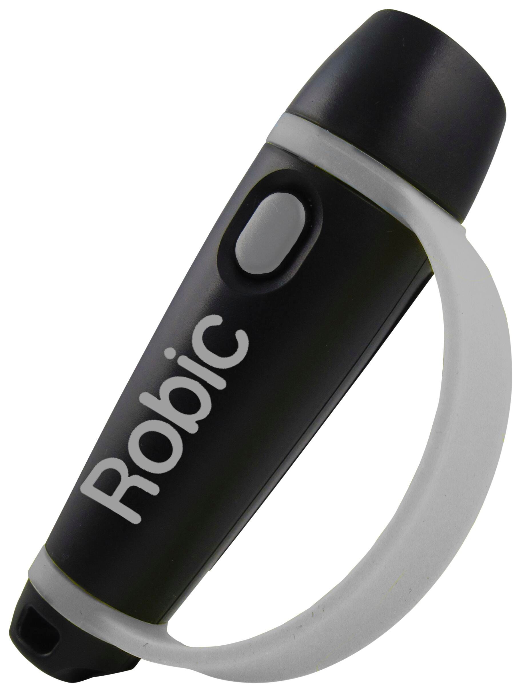 The Robic M619 is a high quality, rugged, impact resistant handheld Electronic Whistle & Personal Alarm which emits a loud, clear audible signal with a volume rated up to 125 dB.Electronic whistle/alarm; 2 AA batteries, Lanyard, Instructions, warranty