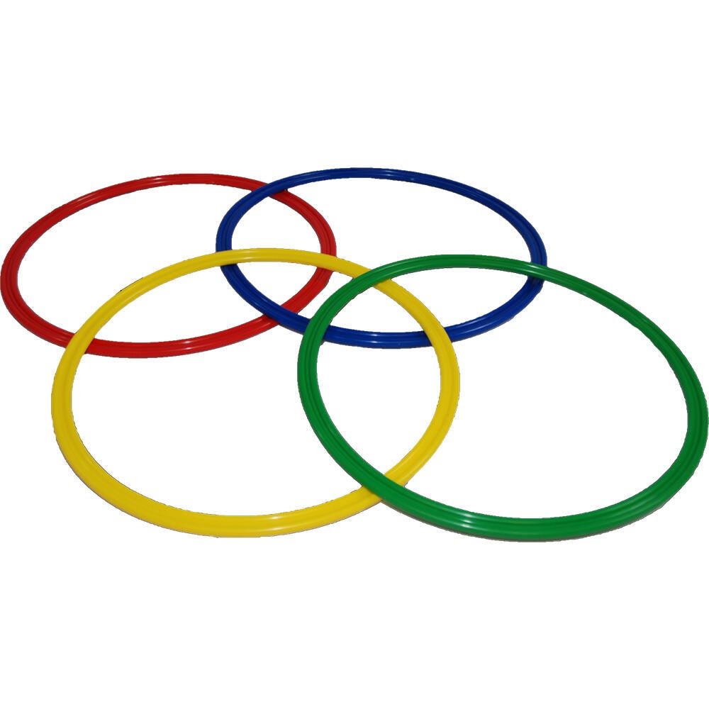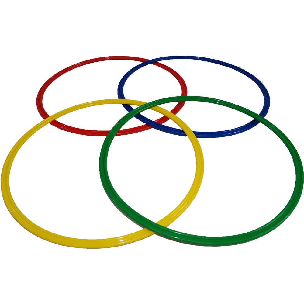 Flat, solid plastic hoops have finger grooves for use during rhythmic gymnastics. At 3/4 inches thick and 26 inches in diameter, hoops are slim enough for floor games and make great stations to crawl through. Sold in sets of 4 in assorted colors.