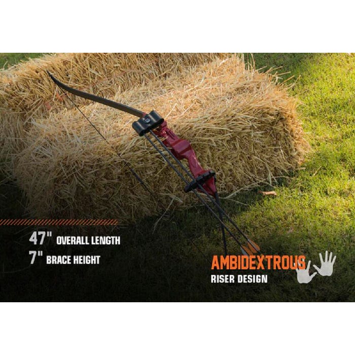The Bear Flash Bow is a perfect beginners bow for young kids trying to learn. It is one of the safest bows and has the ability to be used on either shoulder to give all kids the opportunity to use. It measures 47 inches in length with a 16-24 inch draw length and 5-18 pounds draw weight. 7 inch brace height and includes a whisker biscuit arrow rest and 1 pin sight.
