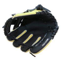 This 9-1/2 inch glove is ultra durable. The palm and webbing are crafted out of supple (yet durable) cowhide leather, while the back is 100 percent heavy-duty nylon mesh for comfortable ventilation. Includes pockets that are shaped to easily catch a softball or baseball and wrist straps that have quick adjust hook and loop fabric closures. Intended for ages 7 to 10 years.Features
