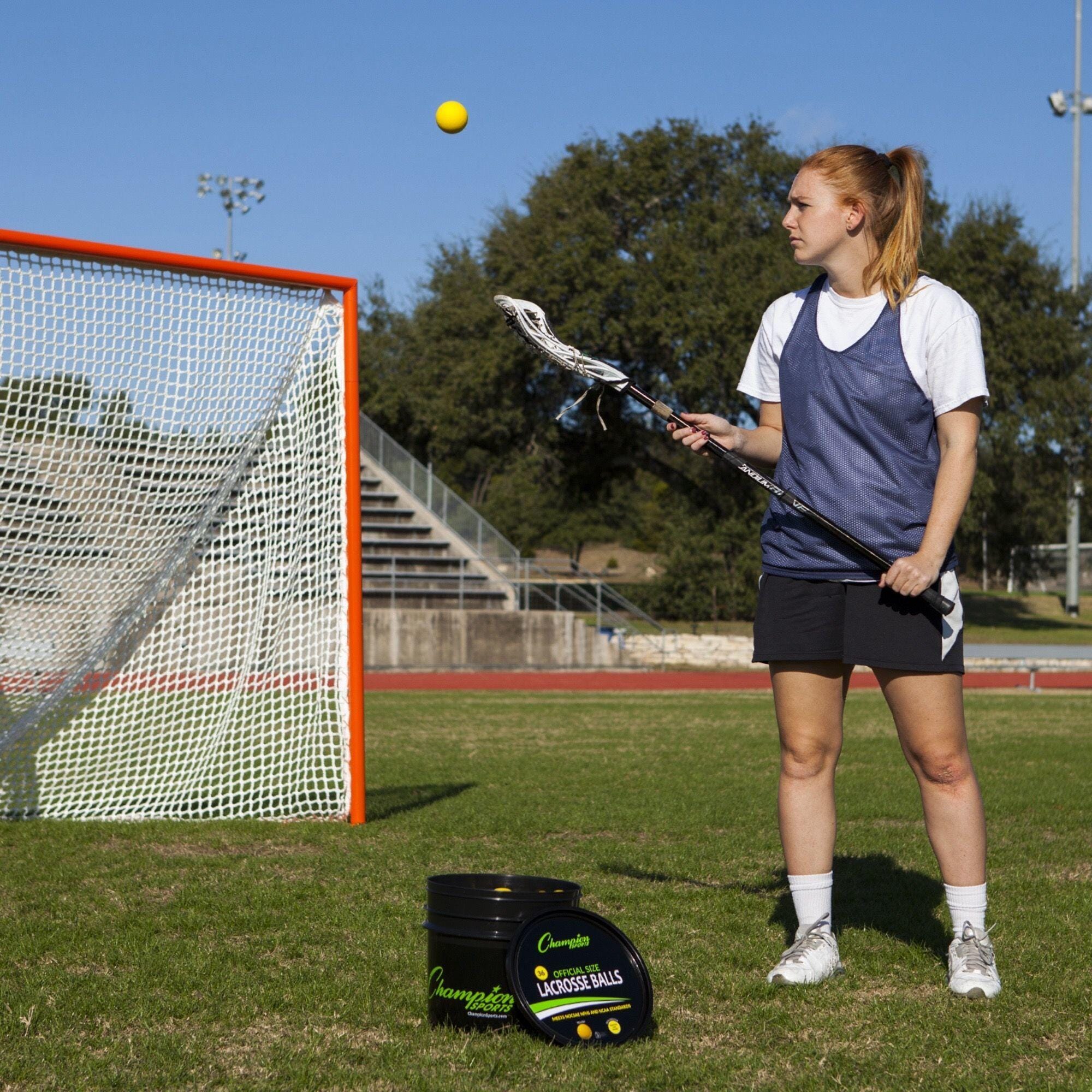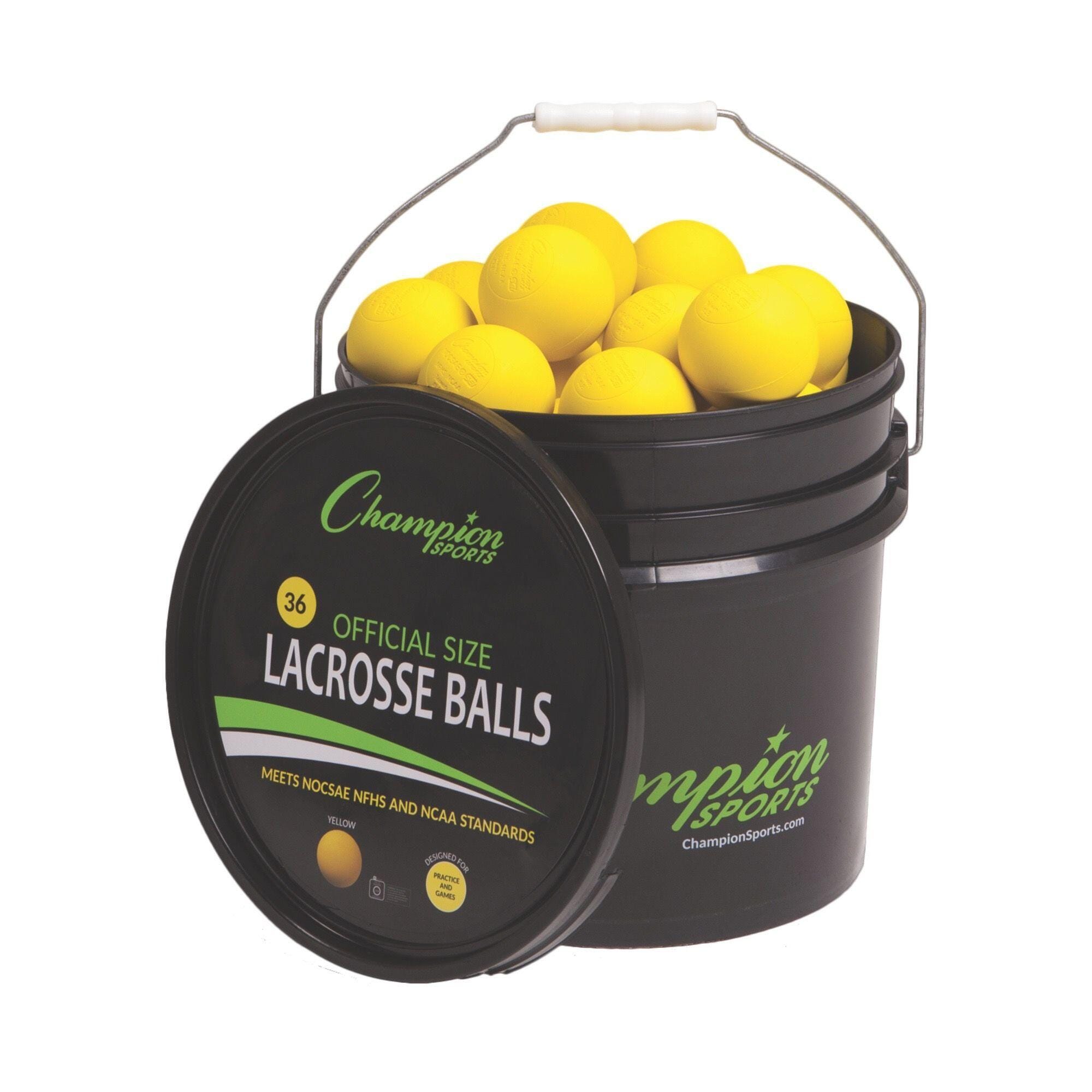 For lacrosse practices at any level, the Champion Sports Lacrosse Ball Bucket includes 36 regulation lacrosse balls that meet NOCSAE® standards, are approved by the NCAA/NFHS and SEI Certified. These molded rubber balls are designed for improved feel and accuracy when playing, and are of the official size and weight required by professional lacrosse leagues.