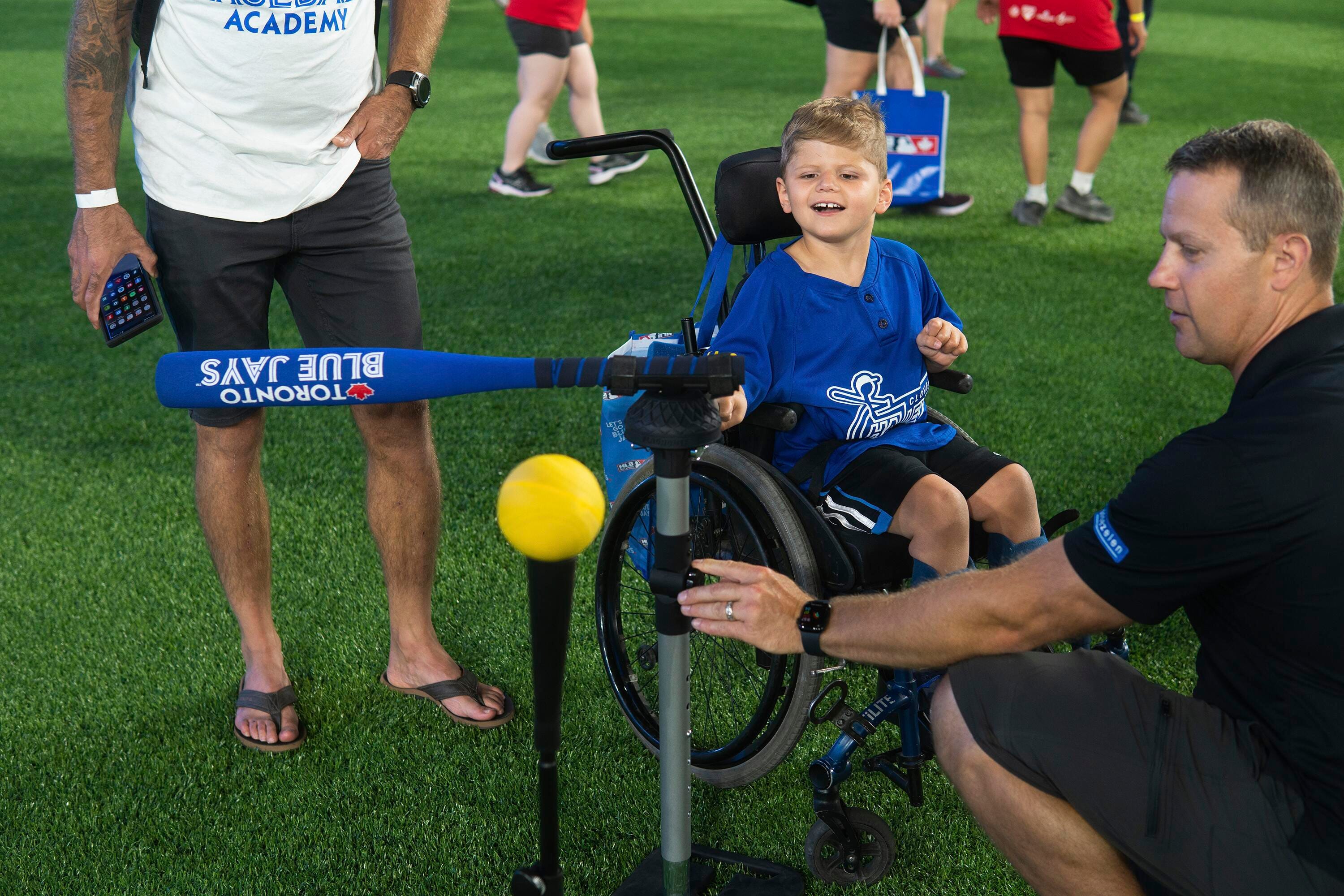 This unique adapted sports equipment allows users with limited motor abilities and/or visual impairments to swing, throw and strike any number of lightweight sport or gaming attachments.