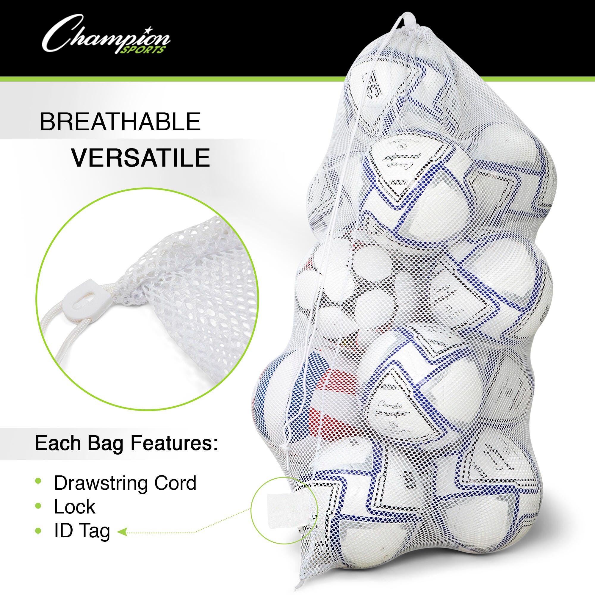 • Strong and secure mesh storage bags are ideal for classrooms, PE programs, sports teams, recreation centers, summer camps, and even homes