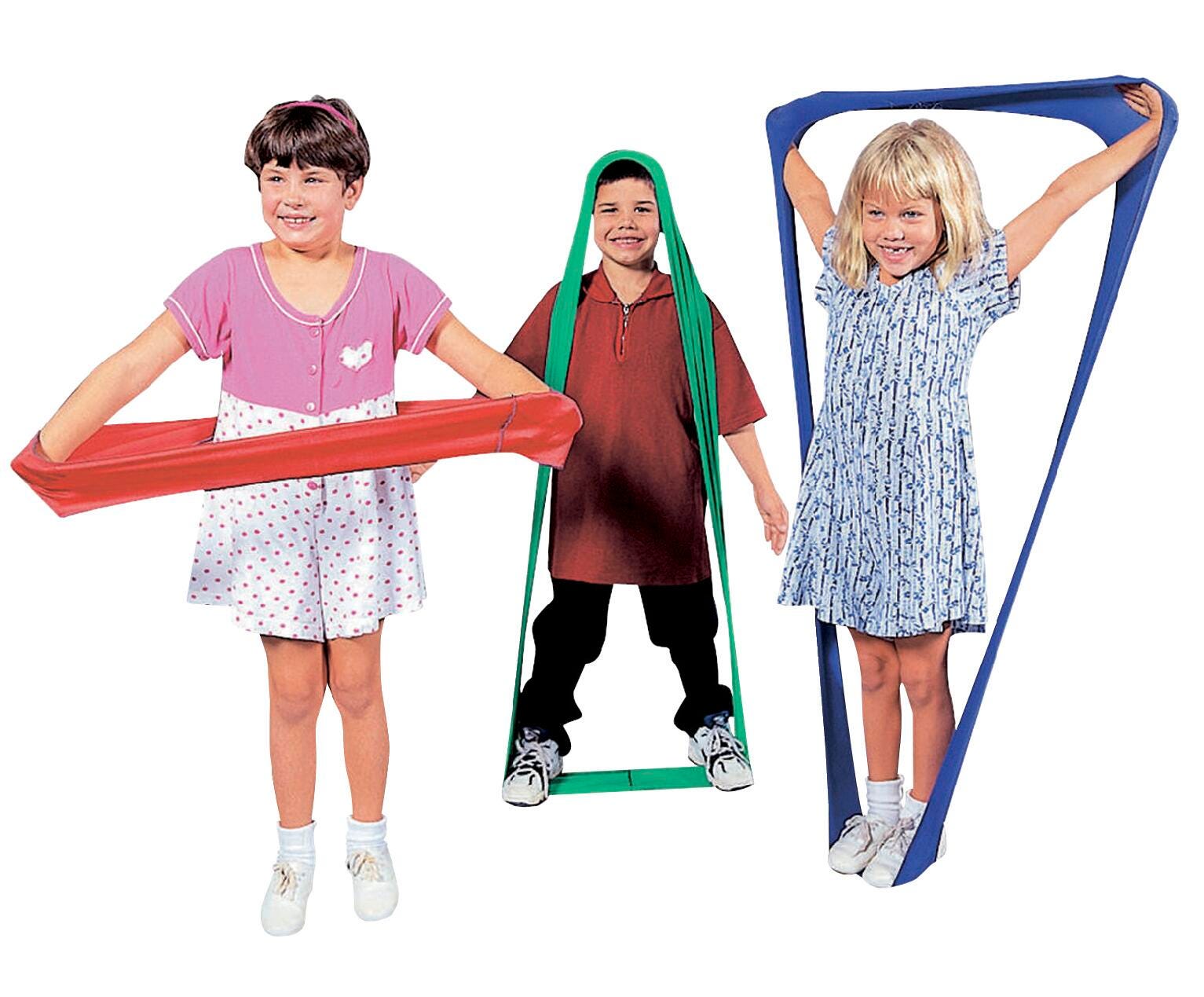 Shapeshifter™ Stretch Bands help children express their individual creativity. The LYCRA bands measure 36 x 6 inches and stretch to over 4 feet long and 8 inches wide. Students can explore the world of space and shape creation by stretching, twisting, bending, twirling, and knotting their Shapeshifters™. These stretch bands are a fun and exciting way to encourage creativity and physical activity.