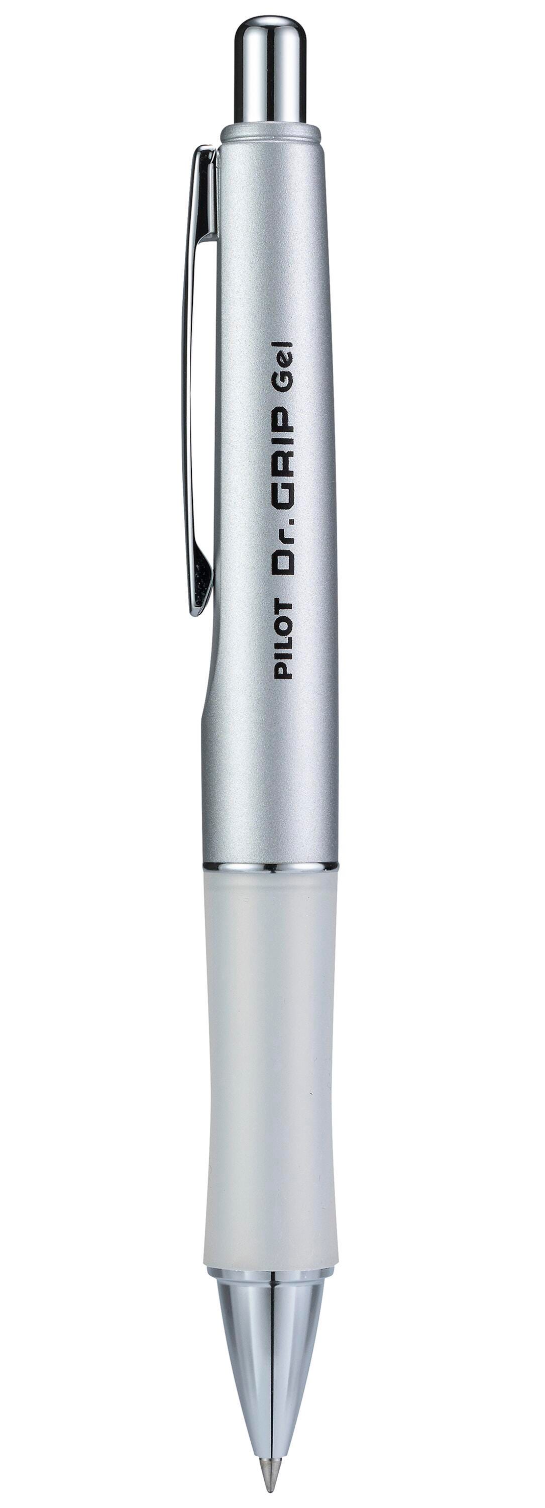 Pilot Dr. Grip Limited Gel Ink Retractable Rolling Ball Pen, Silver Barrel, Fine Point, Black Ink