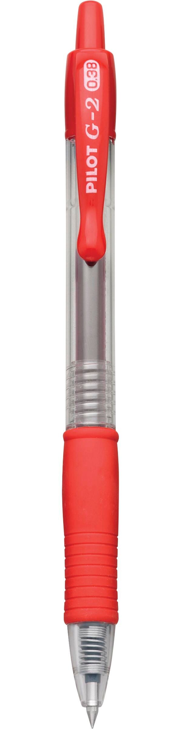 The G2 premium gel ink pen from Pilot is the ultimate pen for the everyday overachiever and the Number 1 selling gel ink brand in America. G2 writes smoothly, comfortably, and have been proven to last longer than the average of competitive gel ink brands. Available in four point sizes, more than 25 vibrant ink colors and a variety of barrel design options, there’s sure to be a G2 perfectly suited to you. This 12-pack of Premium Gel Roller G2 pens all have red ink and ultra-fine 0.38 tips.Features