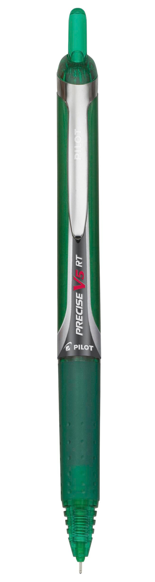 Pilot Precise V5 RT Premium Retractable Rolling Ball Pens, Extra Fine Point, Green Ink, Pack of 12