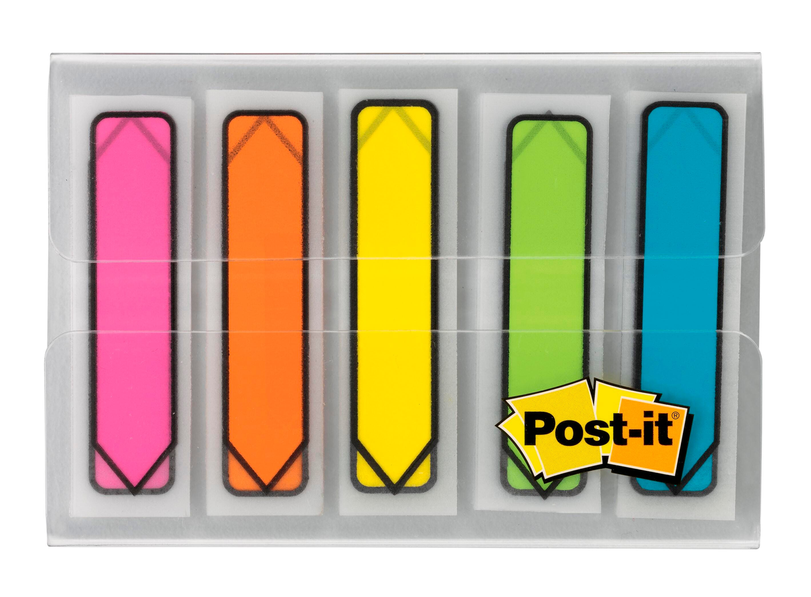 Post-it Arrow Flags, 1/2 x 1-7/10 Inches, Pink, Orange, Yellow, Lime, Light Blue, 20 Flags per Color, Pack of 100