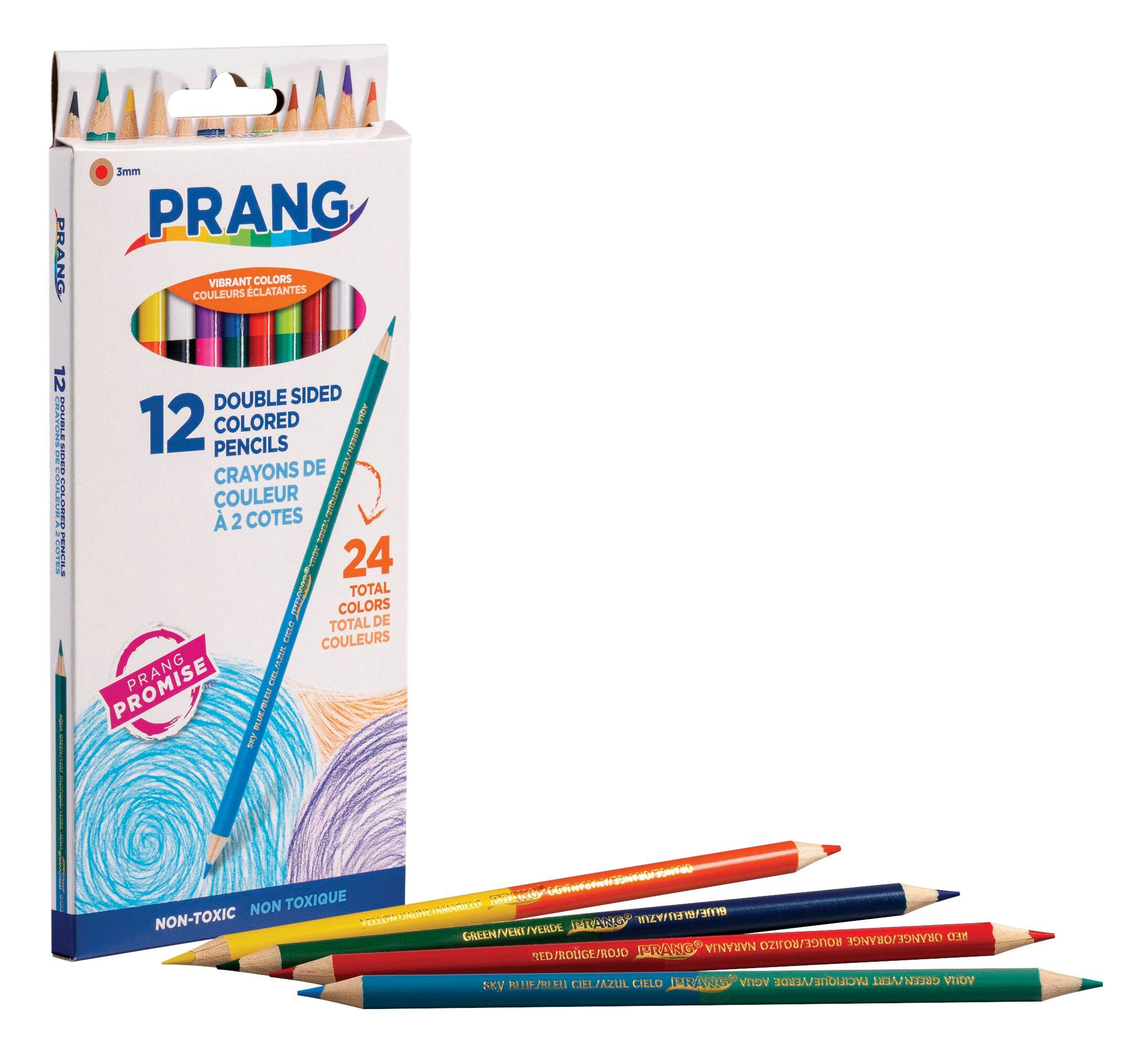 Pre-sharpened colored pencils are ready for immediate use. Features two colors per pencil with a smooth 3 mm core for colorful and comfortable creativity. Wood casing sharpens easily for extended use. Sold as a set of 12 duo colored pencils, for a total of 24 assorted colors.