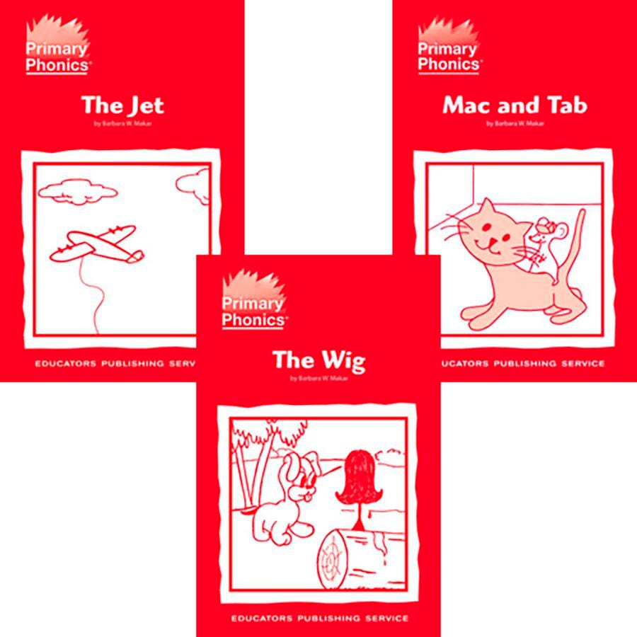 The Primary Phonics Comprehension Storybooks Starter Kit 1 includes 10 decodable storybooks that feature the phonetic concepts introduced in Workbook 1 and only contain previously taught phonetic concepts. Each book is 5-1/2 x 8-1/2 inches and has approximately 16 pages. The first book is Mac and Tab, a story about a rat named Mac and his friend Tab the cat, who are recurring characters in the series. All books feature engaging black and white illustrations; lively contemporary themes; and inside covers which clearly list phonetic concepts and sight words. Comprehension exercises for titles in Storybooks 1 can be found in Comprehension Workbook 1. Storybooks 1A contain the same concepts as those in Storybooks 1, but include the sight word was. This set reviews short vowel sounds, using phonetic skills to read decodable/connected text, and sight words.