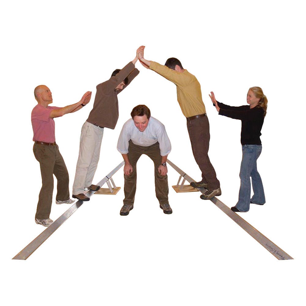 The Wild Side Kit allows you to carry out traditional challenge course activities without stringing cables across the room. The kit consists of six sections of square aluminum tubing, each 8 feet long, set on a edge, stabilized by support feet. The edge is rounded just enough to give the feel and "wobble" of walking on a wire cable. A special insert added to the feet can modify the challenge by allowing participants to walk on the 3 inch wide flat edge of the square tubing instead. Easy set-up, take-down and storage. Guidelines for assembly and leading group activities are included.