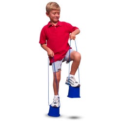 Step-N-Stilts add a fun element to balance development. New deep pebble-grain surfaces gives superior footing, plus the step-n-roll bottoms better mimic natural foot movement. Strong PVC rope hand cords can be reknotted for length adjustment. Step-N-Stilts are made of a sturdy plastic and the strand measure 4-7/8 in. Set includes 6 pairs of Step-N-Stilts with one pair in each color: Red, Yellow, Blue, Green, Purple and Orange.Features