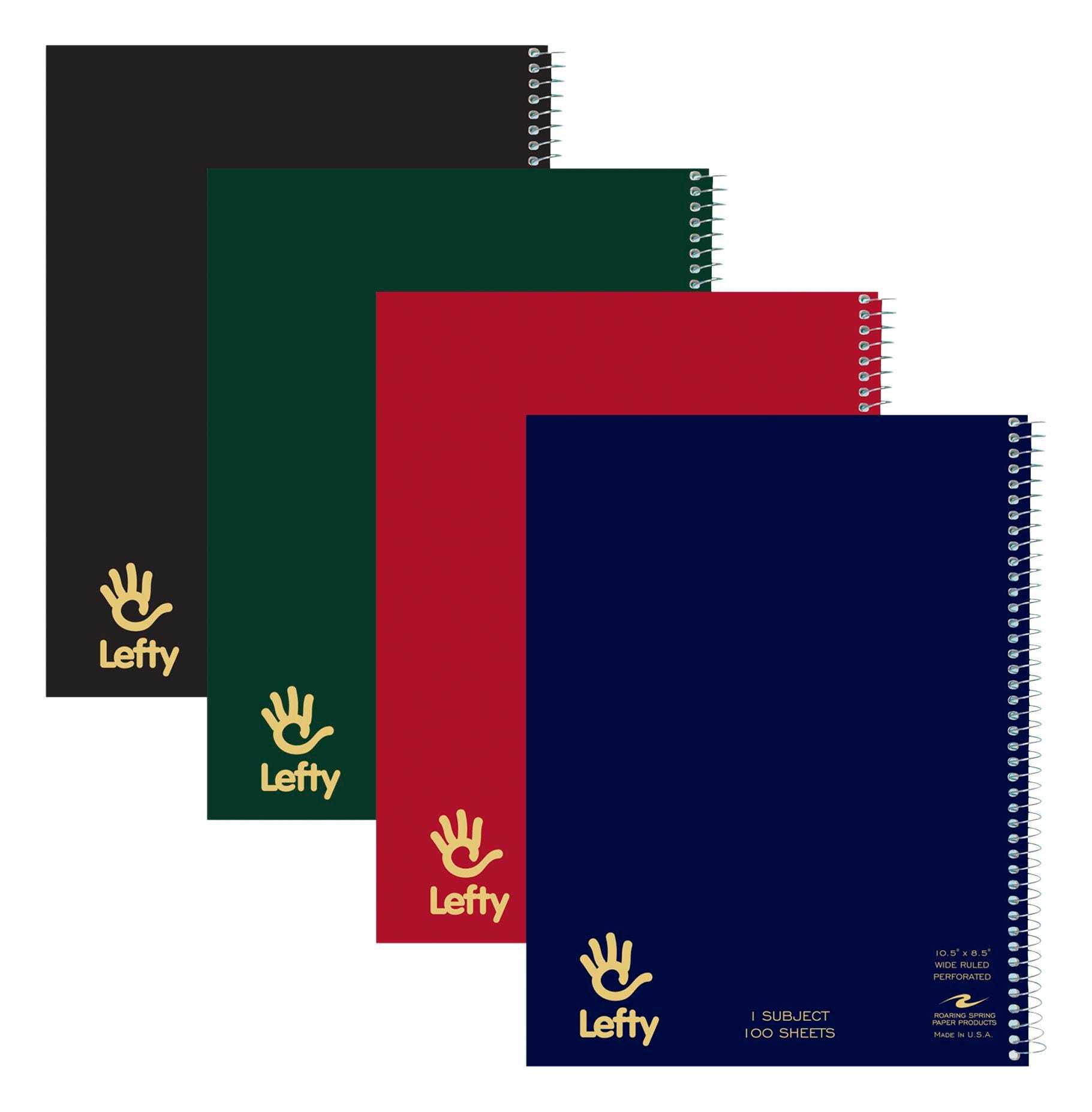 Roaring Spring Left-Handed 1 Subject Notebook, 8-1/2 x 10-1/2 Inches, Assorted Color, 100 Sheets