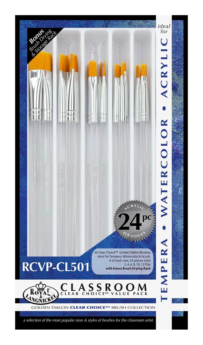 Royal & Langnickel Clear Choice Gold Taklon Brushes, Flat, Set of 24