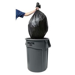 Rubbermaid Brute Round Storage Container Bin has a capacity of 44 gallons. Innovative venting channels make lifting out liners up to 50% easier and the integrated cinches secure the liner, allowing for efficient knot free liner changes. Features rounded handles for easier lifting and moving. Reinforced handles and base to withstand the toughest challenges and environments. Measures 24 x 24 x 31-1/2 inches.Features