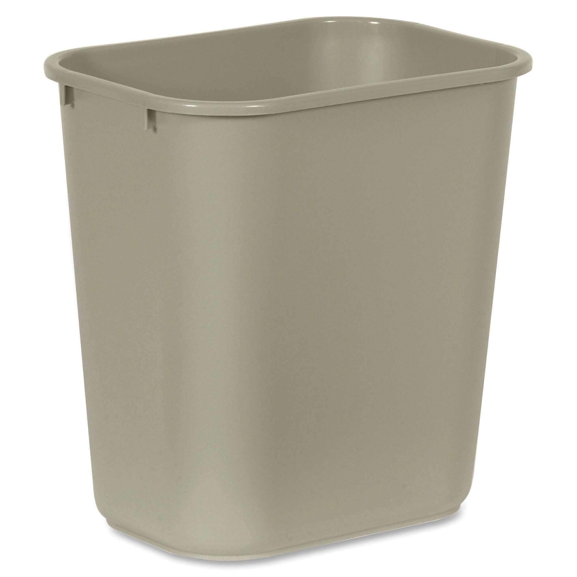 Rubbermaid Beige Standard Series Wastebasket measuring 15 in x 14-1/4 in x 10-1/4 in is attractive, durable, easy to clean and will not damage furniture or floors.