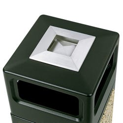 This 38-gallon receptacle with side openings is built to contain waste with an easy-to-identify style that doesn't detract from your outdoor space, with an add-on 9-inch steel ash urn. Available in tan.