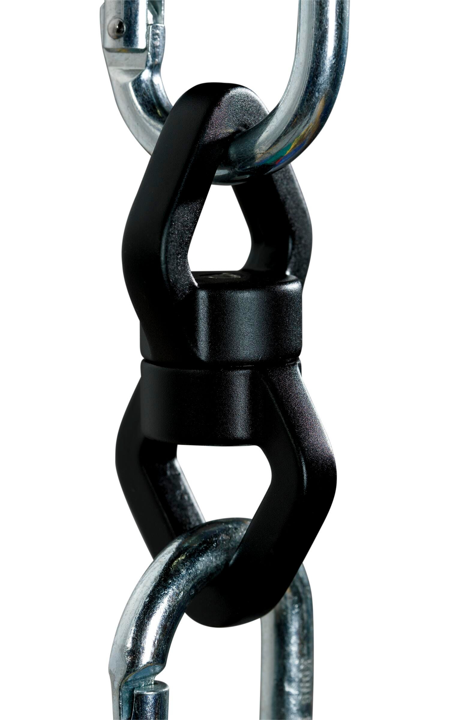 This safety device provides a connection to a single suspension point using the included locking Safety Snap, allowing for smooth and safe rotation of equipment in a clockwise or counterclockwise direction. The strong aluminum body with steel roller bearing and forged eye ring has a weight capacity of 1600 pounds.Includes: