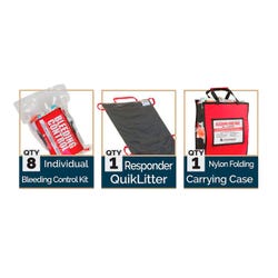 North American Rescue (NAR) Public Access Bleeding Control Pack is designed to provide bystanders and initial first responders with quick and easy access to essential medical equipment for stopping life-threatening bleeding. The pack includes eight (8) Individual Bleeding Control Kits that are contained inside of an easy-to-open carrying case.Includes: