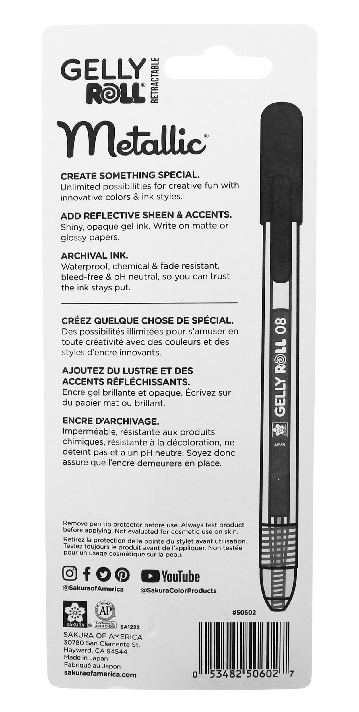 Gelly Roll Retractable Metallic's shiny, polished colors write on both light and dark papers as well as glossy and matte surfaces. Sakura's archival quality gel ink ensures that your work (and the metallic sheen) will last for years.