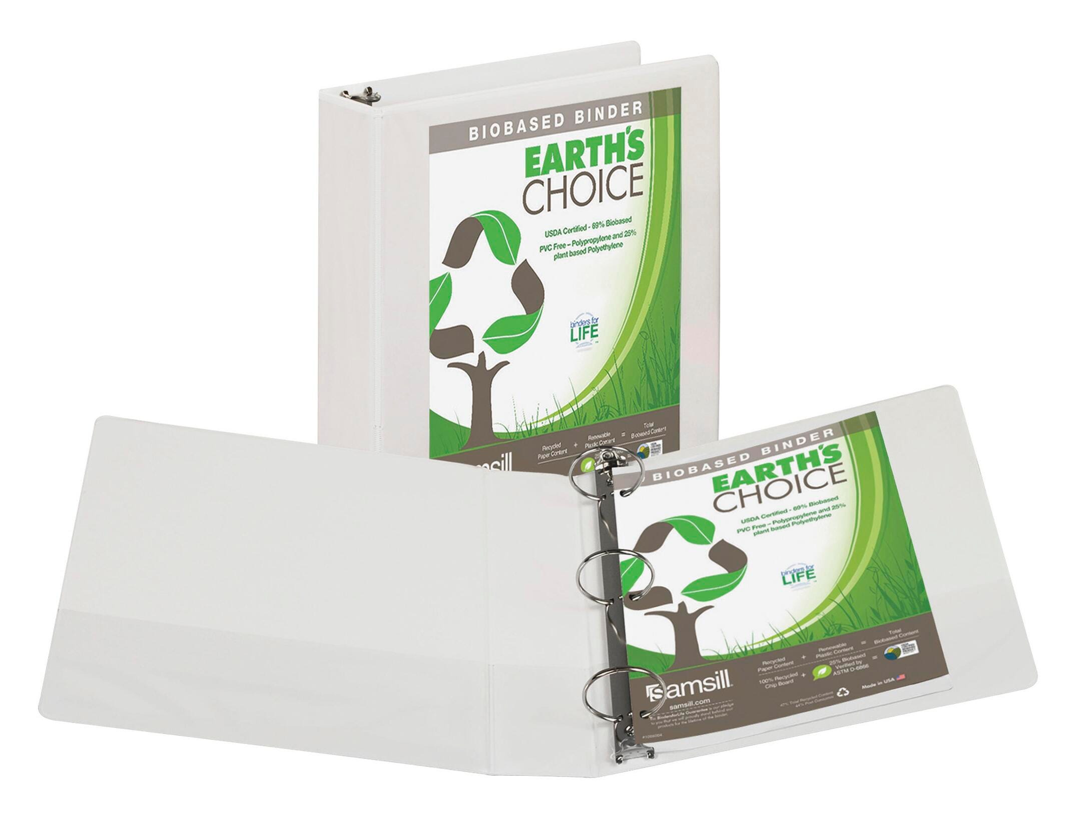 Combined biobased and biodegradable properties offer a perfect balance of beginning of life and end of life sustainability benefits. The cover is composed of at least 69% biobased material including environmentally friendly polypropylene and 25% plant based renewable material. Binder is a USDA Certified Biobased Product and also formulated to biodegrade in a microbial landfill within 5 years; versus the hundreds of years it takes normal plastic. Chipboard is made from 100% recycled material. PVC free, acid free, and archival safe. Removable ring for easy recycling. Lifetime product guarantee.Features