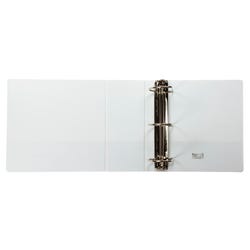 - D-ring binder has rings mounted on back lid and 2 sturdy pockets inside for paperwork storage